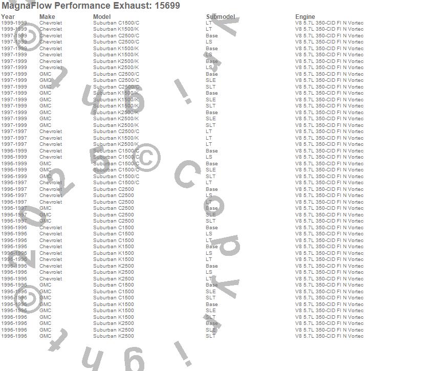 Below is an abreviated list of applications for the MF Series Performance Cat-Back Exhaust System.