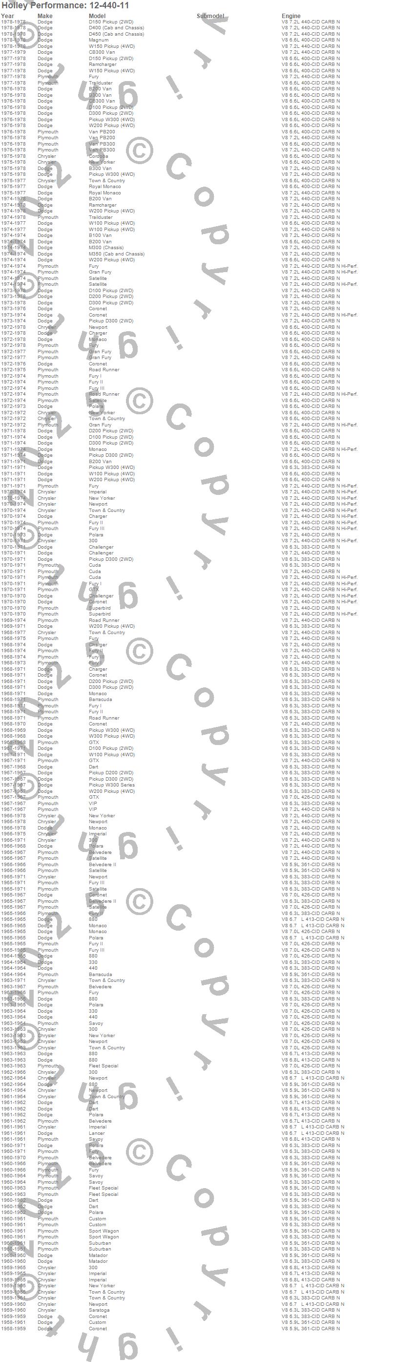 300, 330, 440, 880, B100 Van, B200 Van, B300 Van, Barracuda, Belvedere, Belvedere II, CB300 Van, Challenger, Charger, Cordoba, Coronet, Cuda, Custom, D100 Pickup, D150 Pickup, D200 Pickup more…