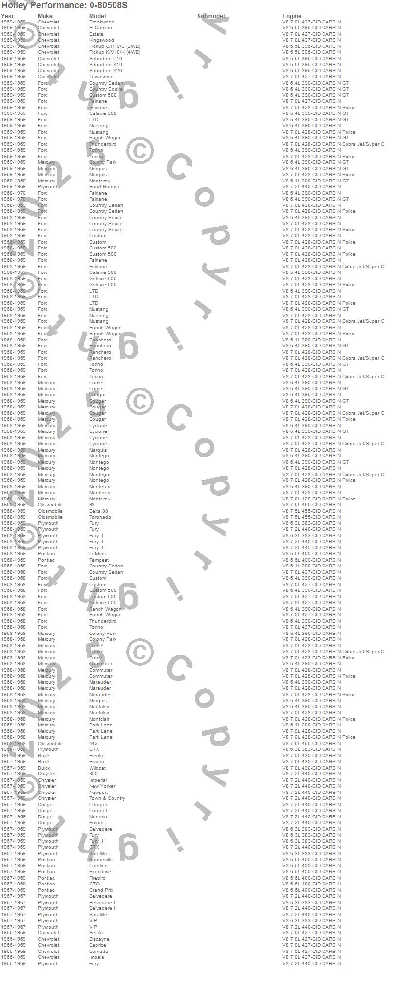 Below is an abreviated list of applications for the Street Carburetor.