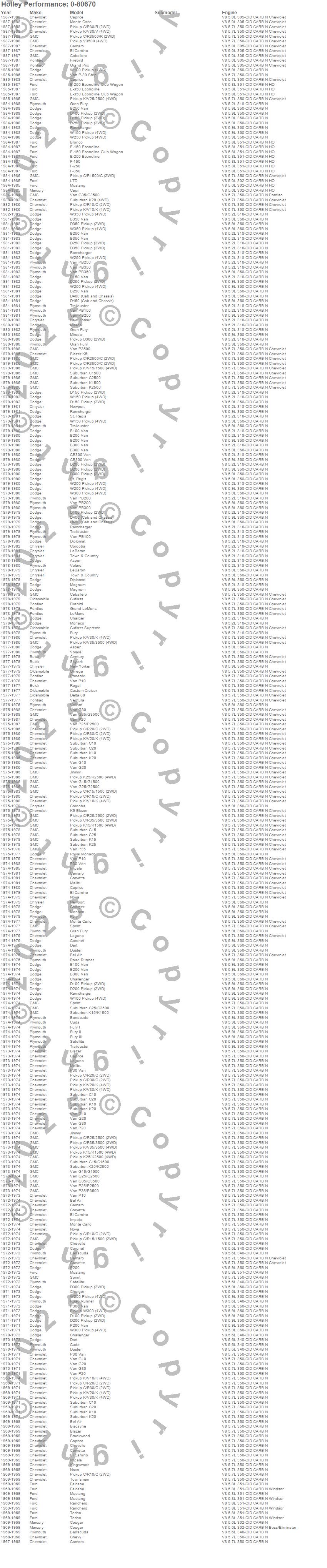 Below is an abreviated list of applications for the Street Avenger Carburetor.