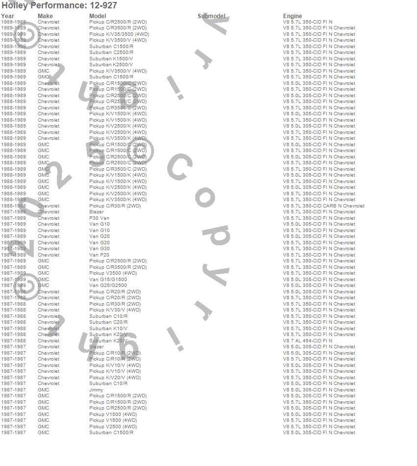 Blazer, C1500, C1500 Pickup, C2500 Pickup, C3500 Pickup, G10 Van, G15/G1500 Van, G20 Van, G25/G2500 Van, G30 Van, Jimmy, K1500 Pickup, K2500 Pickup, K3500 Pickup, P20 Van, P30 Van, R10 Pickup, R10 Suburban, R1500 Pickup, R1500 Suburban more…