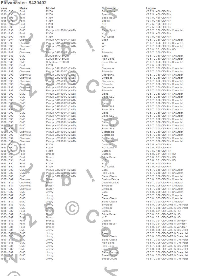 Below is an abreviated list of applications for the 40 Series Delta Flow Muffler.