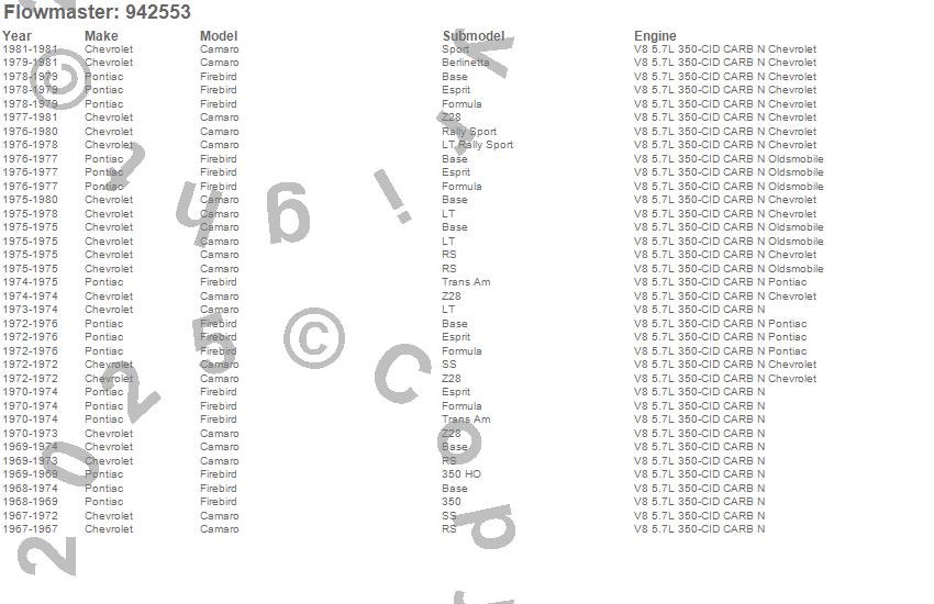 Below is an abreviated list of applications for the 50 Series Delta Flow Muffler.