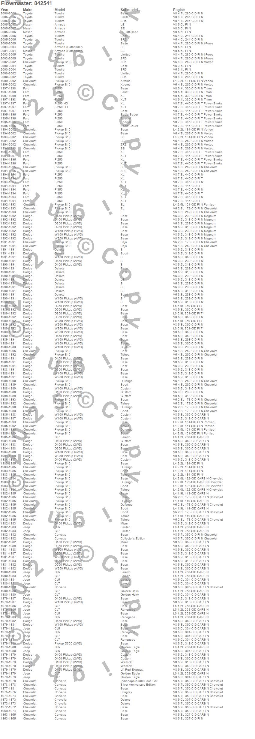 Below is an abreviated list of applications for the 40 Series Delta Flow Muffler.