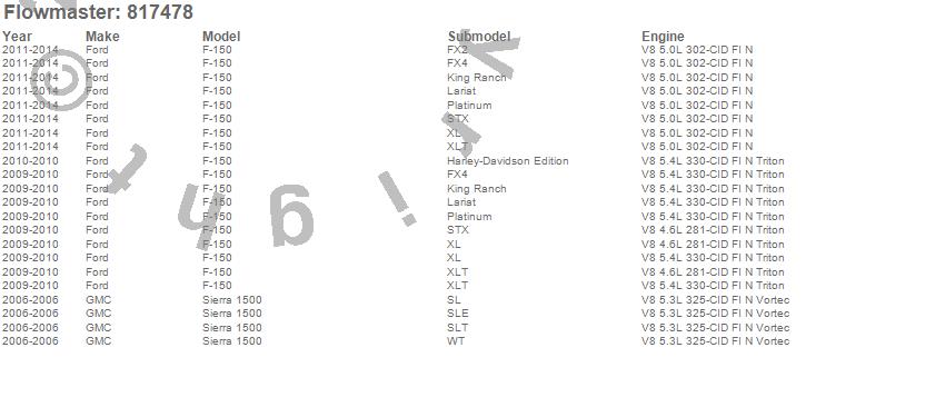 Below is an abreviated list of applications for the Force II Cat Back System.