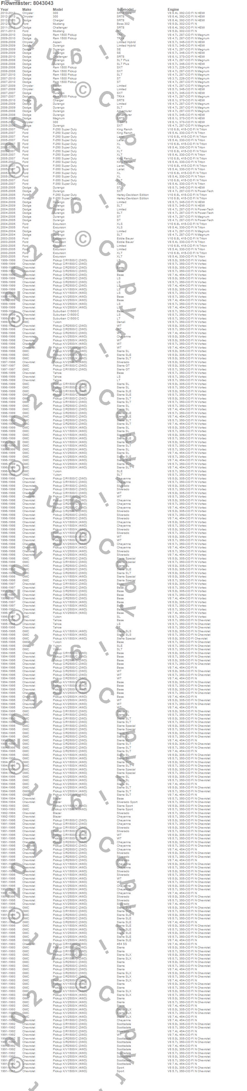 300, Aspen, Blazer, C1500, C1500 Pickup, C1500 Suburban, C2500 Pickup, Challenger, Charger, Dakota, Durango, Excursion, F-250 Super Duty, F-350 Super Duty, K1500, K1500 Pickup, K2500 Pickup, Magnum, Mustang, Ram 1500 more…