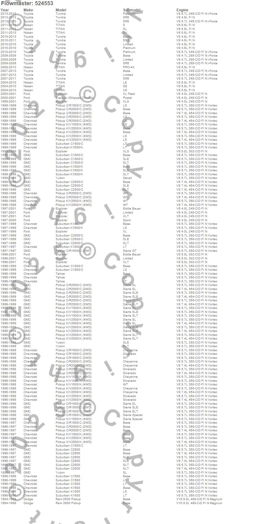 C1500 Pickup, C1500 Suburban, C2500 Pickup, C2500 Suburban, Explorer, Explorer Sport Trac, K1500 Pickup, K1500 Suburban, K2500 Pickup, Ram 2500, Ram 3500, Tahoe, Titan, Tundra, Yukon, Chevrolet, Dodge, Ford, GMC, Nissan more…