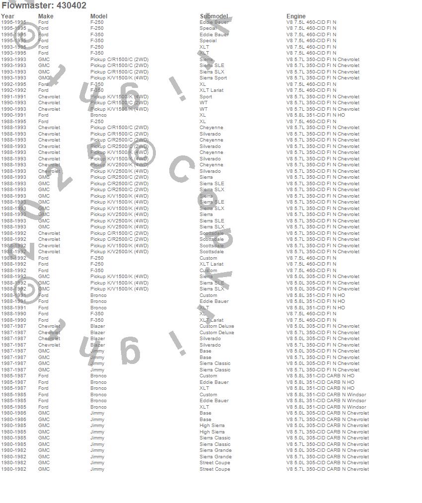 Below is an abreviated list of applications for the 40 Series Muffler.