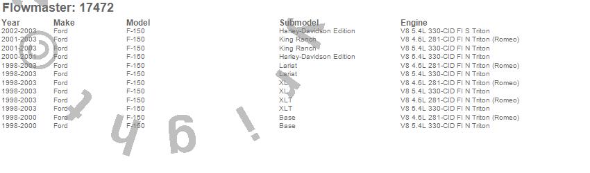 Below is an abreviated list of applications for the Force II Cat Back System.