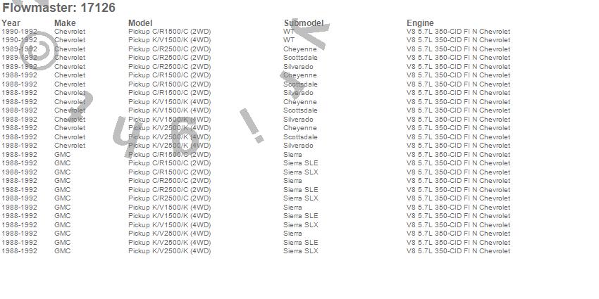 Below is an abreviated list of applications for the Force II Cat Back System.