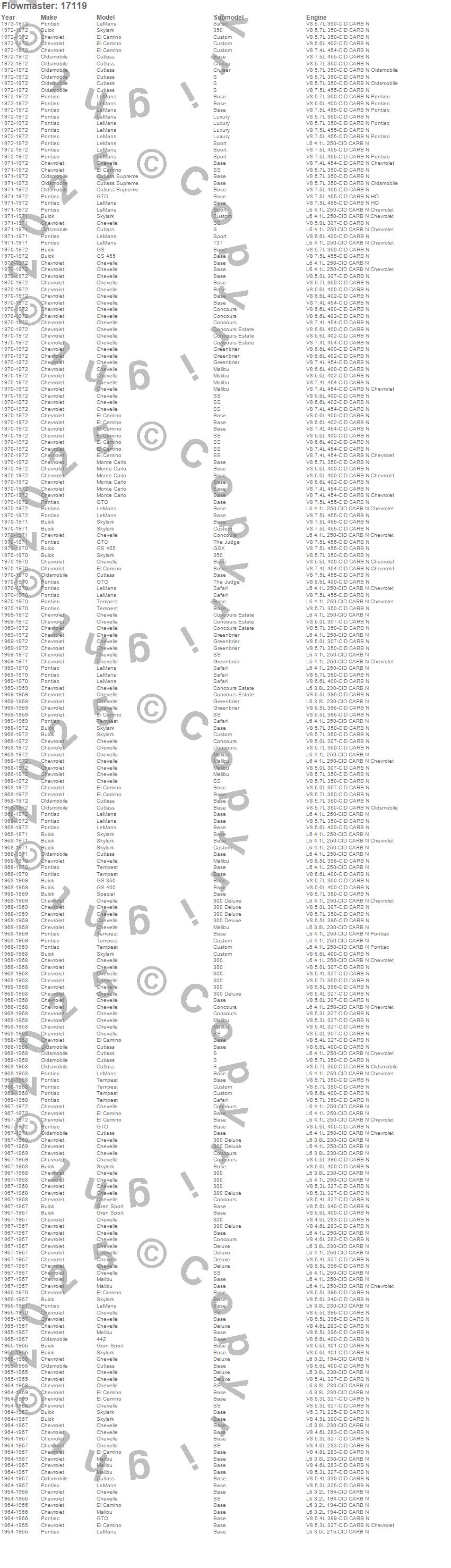 442, Chevelle, Cutlass, Cutlass Supreme, El Camino, Gran Sport, GS, GS 350, GS 400, GS 455, GTO, LeMans, Malibu, Monte Carlo, Skylark, Special, Tempest, Buick, Chevrolet, Oldsmobile more…