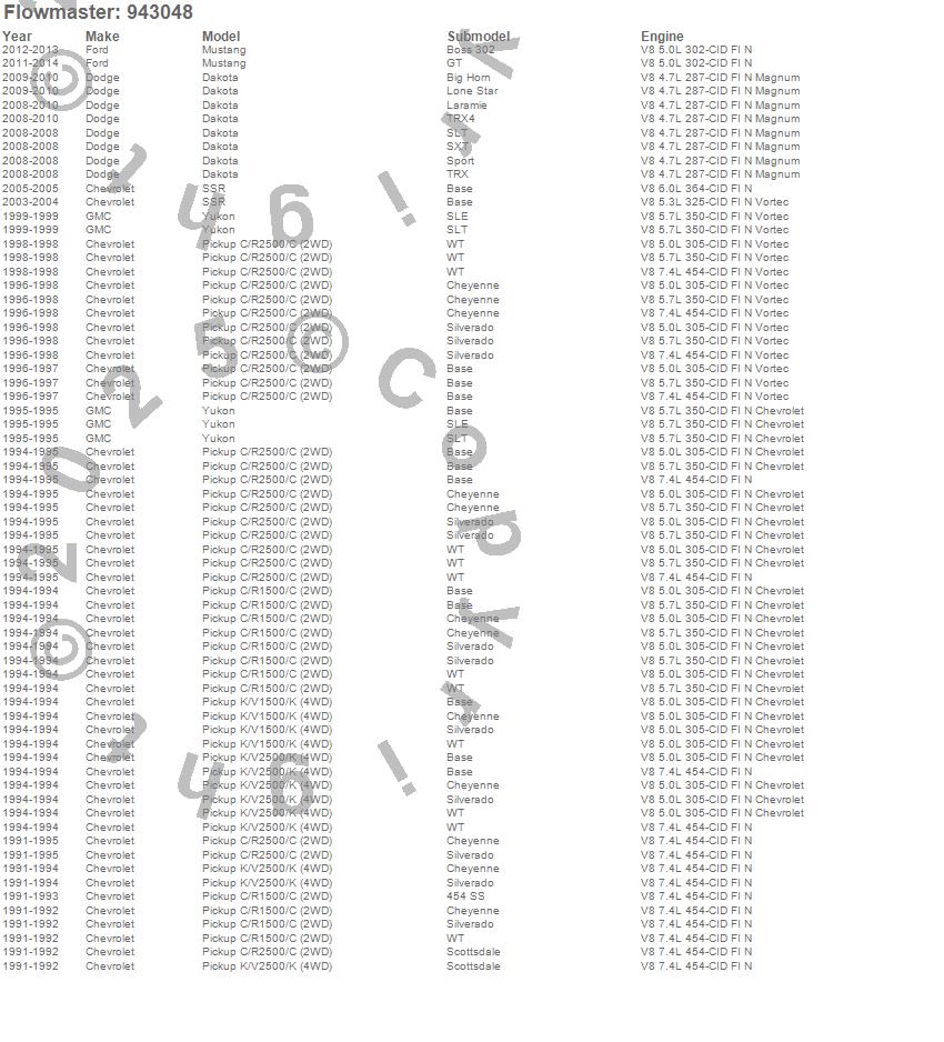 Below is an abreviated list of applications for the Super 44 Delta Flow Muffler.