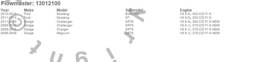 Below is an abreviated list of applications for the Pro Series Muffler.