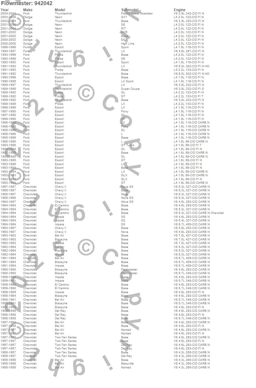 Below is an abreviated list of applications for the 40 Series Delta Flow Muffler.