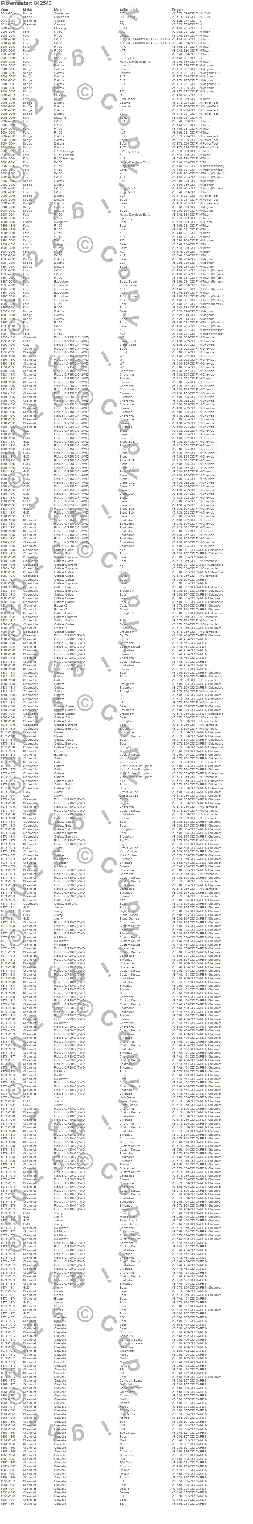 Blazer, Blazer K5, C10 Pickup, C1500, C1500 Pickup, C20 Pickup, C2500 Pickup, C30 Pickup, Camaro, Challenger, Chevelle, Cutlass, Cutlass Calais, Cutlass Cruiser, Cutlass Salon, Cutlass Supreme, Dakota, Expedition, F-150, F-150 Heritage more…