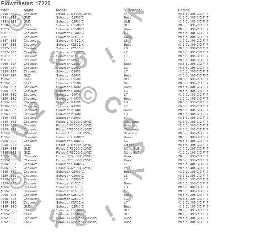 Below is an abreviated list of applications for the Turbo Diesel Down Pipe Kit.