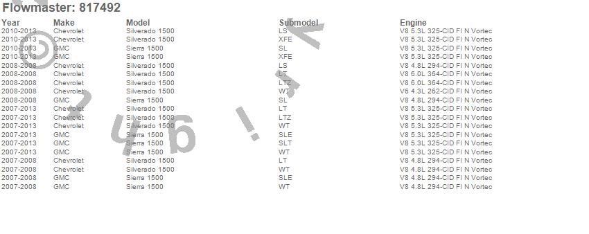 Below is an abreviated list of applications for the Force II Cat Back System.