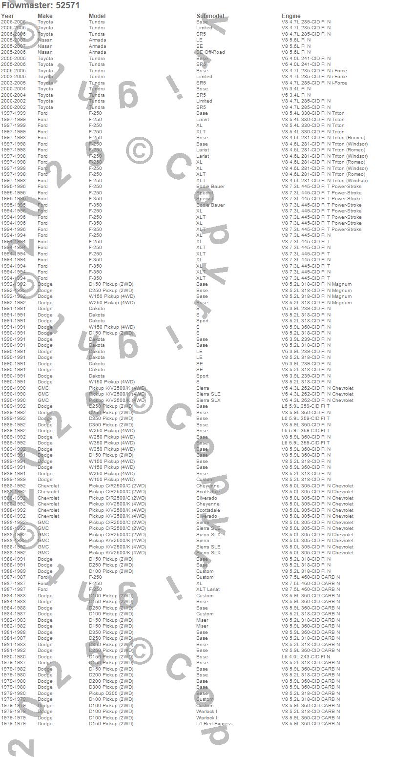 Below is an abreviated list of applications for the 70 Series Big Block II Muffler.