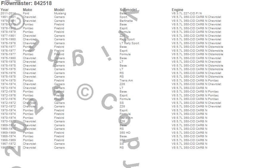 Below is an abreviated list of applications for the Super 10 Series Muffler.