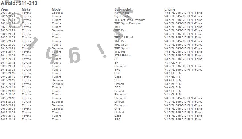Below is an abreviated list of applications for the AIRAID Cold Air Dam Intake System.
