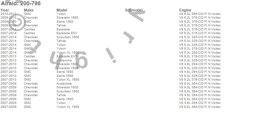 Below is an abreviated list of applications for the AIRAID Jr. Intake Tube Kit.