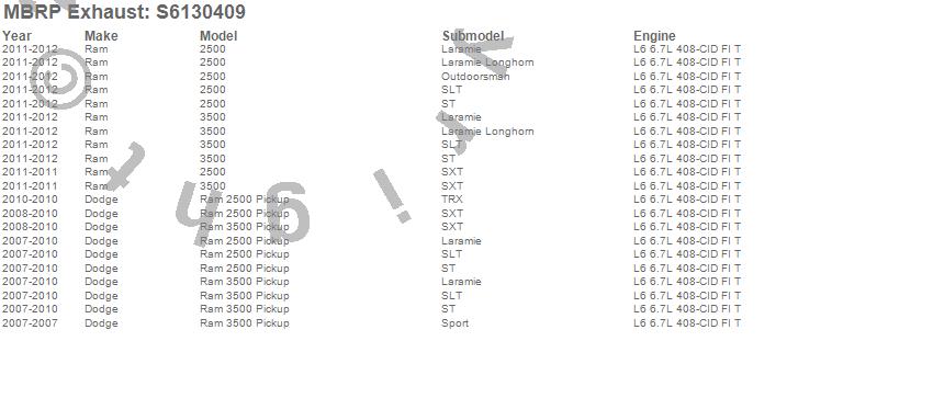 Below is an abreviated list of applications for the XP Series Filter Back Exhaust System.