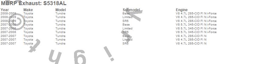 Below is an abreviated list of applications for the Installer Series Cat Back Exhaust System.