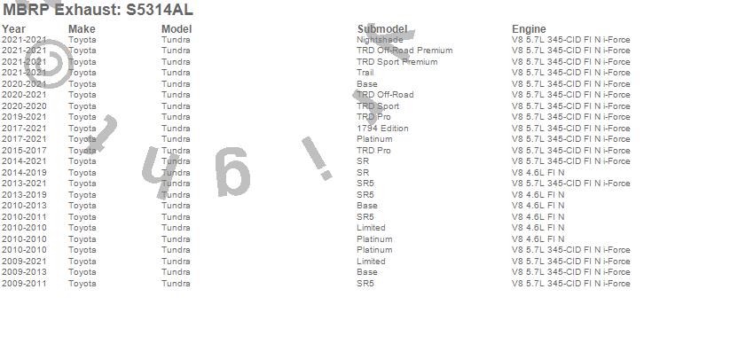 Below is an abreviated list of applications for the Installer Series Cat Back Exhaust System.