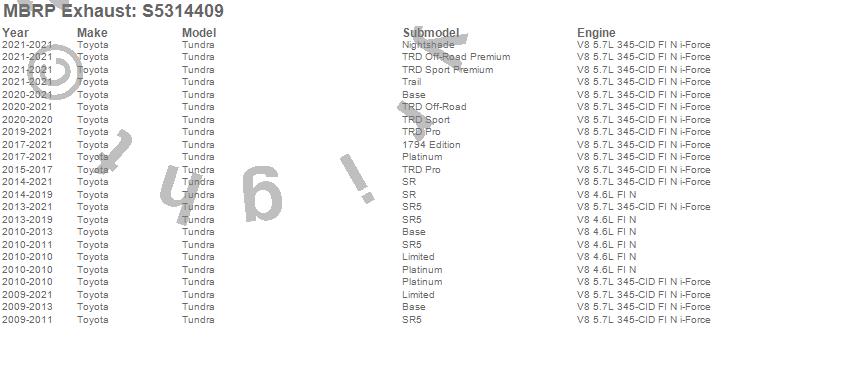 Below is an abreviated list of applications for the XP Series Cat Back Exhaust System.