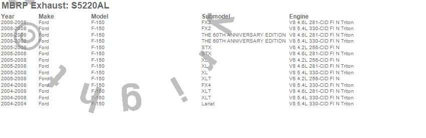 Below is an abreviated list of applications for the Installer Series Cat Back Exhaust System.
