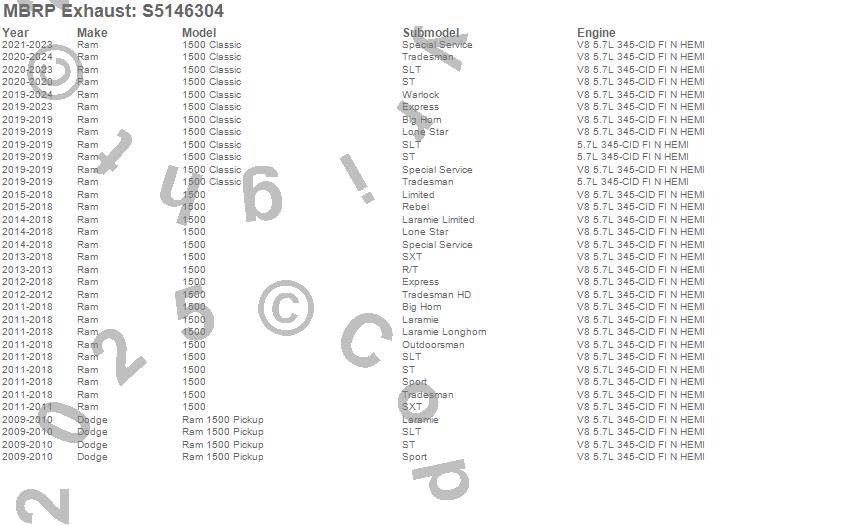 Below is an abreviated list of applications for the Pro Series Cat Back Exhaust System.