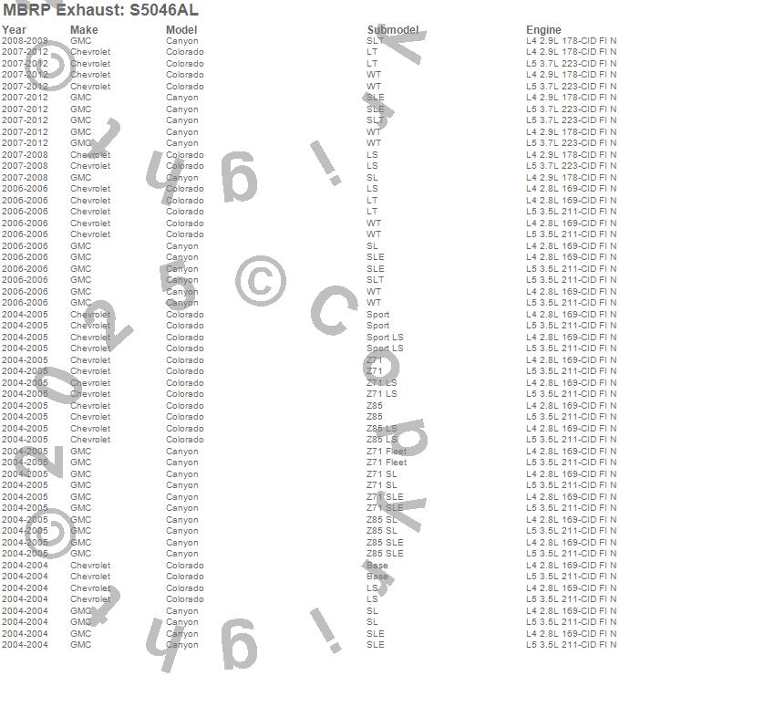 Below is an abreviated list of applications for the Installer Series Cat Back Exhaust System.