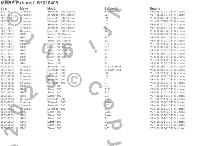 Below is an abreviated list of applications for the XP Series Cat Back Exhaust System.