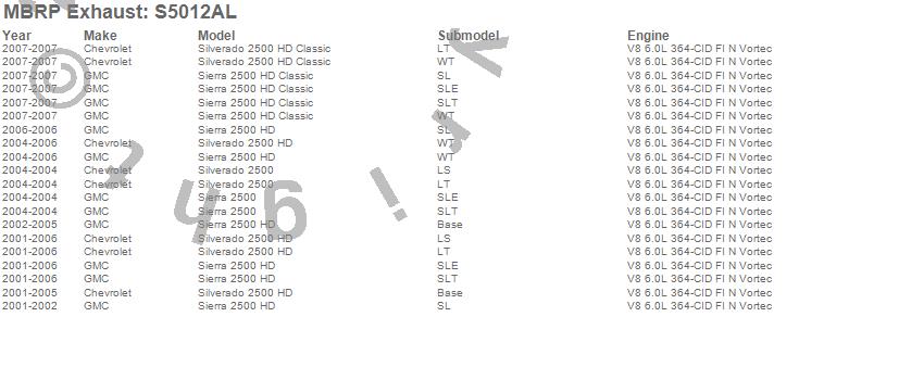 Below is an abreviated list of applications for the Installer Series Cat Back Exhaust System.