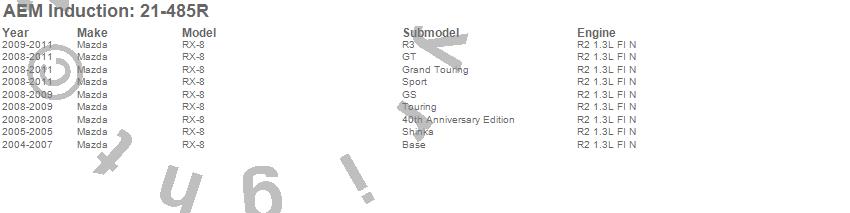 Below is an abreviated list of applications for the Cold Air Induction System.