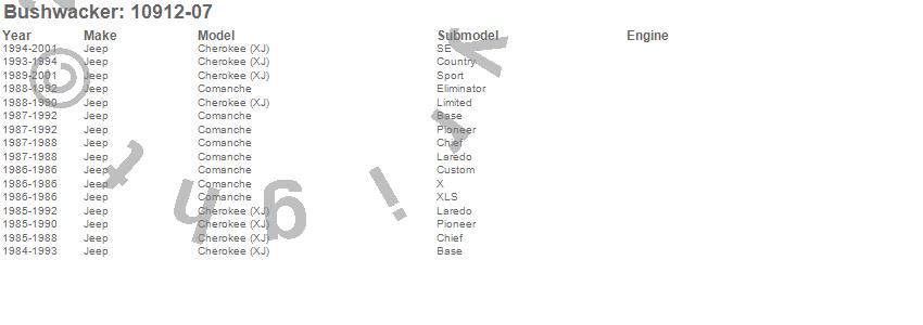 Cherokee (XJ), Comanche, Jeep, 2001, 2000, 1999, 1998, 1997, 1996, 1995, 1994, 1993, 1992, 1991, 1990, 1989, 1988, 1987, 1986, 1985 more…