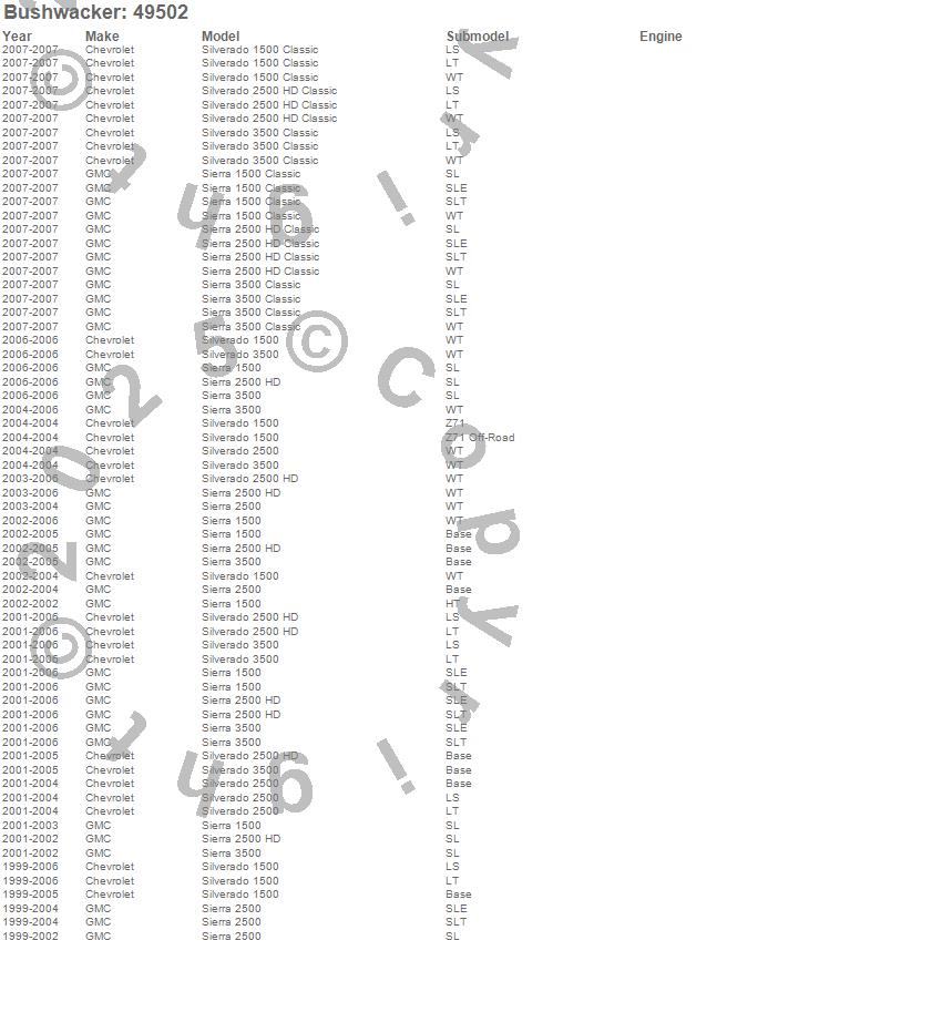 Below is an abreviated list of applications for the Ultimate DiamondBack Bed Rail Cap.