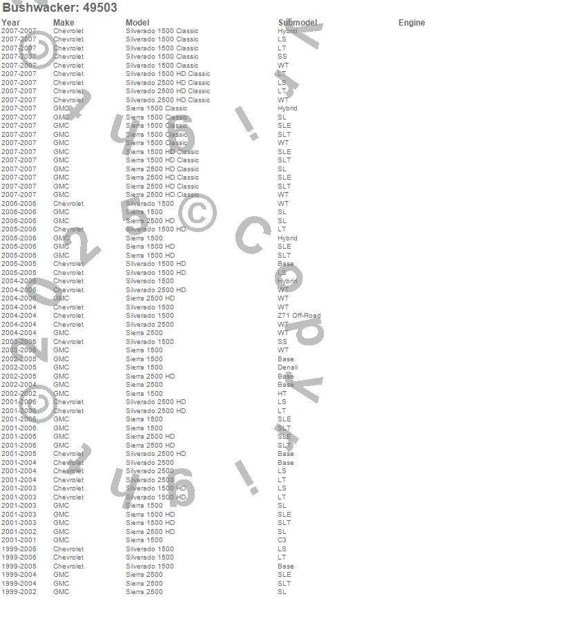 Below is an abreviated list of applications for the Ultimate DiamondBack Bed Rail Cap.