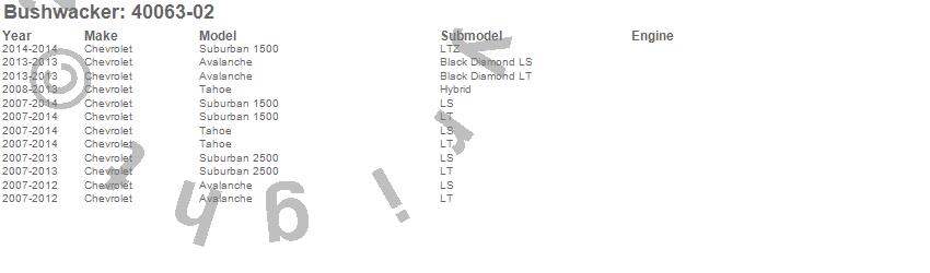 Avalanche, Suburban 1500, Suburban 2500, Tahoe, Chevrolet, 2014, 2013, 2012, 2011, 2010, 2009, 2008, 2007 more…