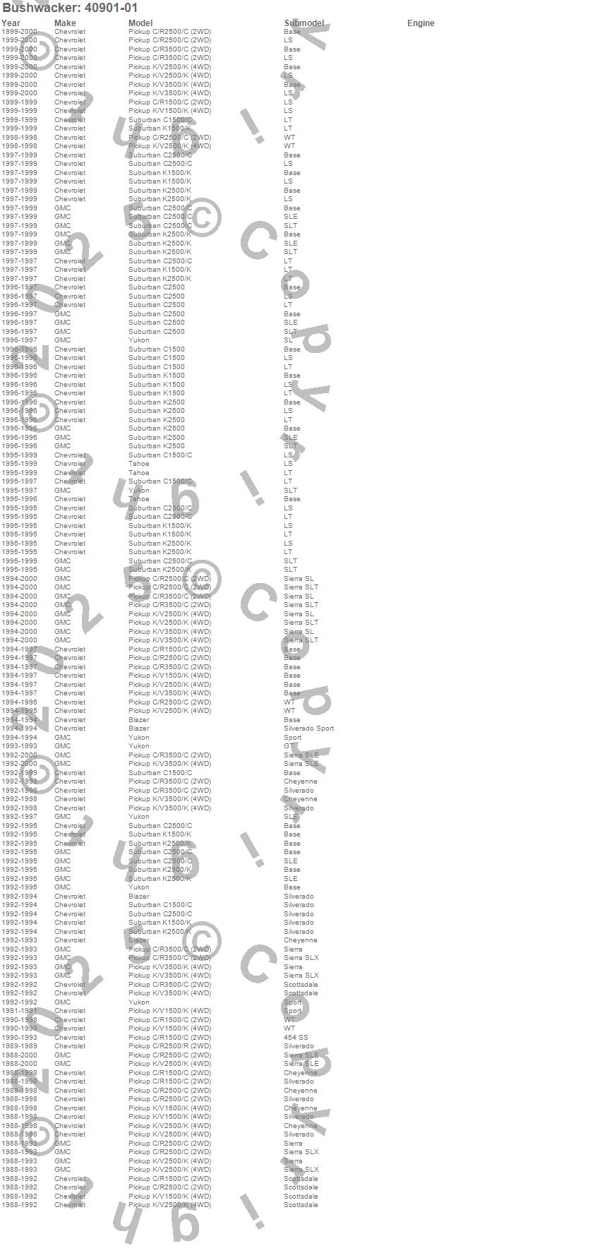 Blazer, C1500, C1500 Pickup, C1500 Suburban, C2500 Pickup, C2500 Suburban, C3500 Pickup, K1500, K1500 Pickup, K1500 Suburban, K2500 Pickup, K2500 Suburban, K2500 Suburban (Canadian), K3500 Pickup, R2500 Pickup, Tahoe, Yukon, Chevrolet, GMC, 2000 more…