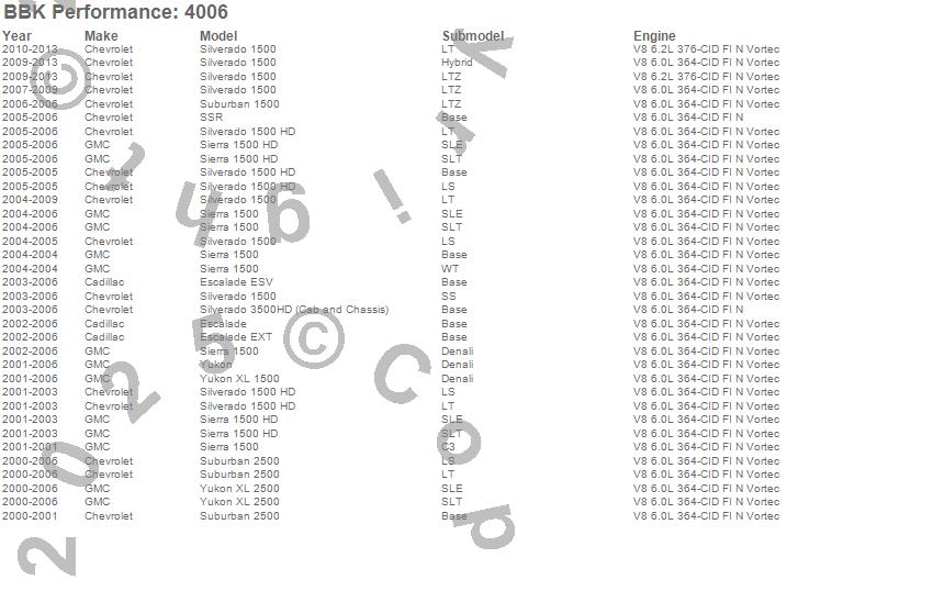 Below is an abreviated list of applications for the CNC-Series Performance Header.