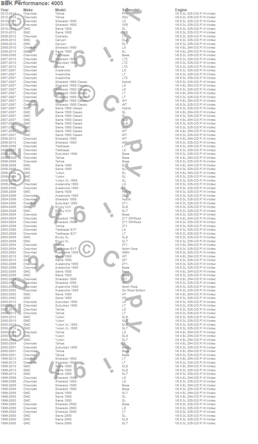 Avalanche, Avalanche 1500, Escalade, Sierra 1500, Sierra 2500, Silverado 1500, Silverado 2500, Suburban 1500, Tahoe, Yukon, Yukon XL 1500, Cadillac, Chevrolet, GMC, 2007, 2006, 2005, 2004, 2003, 2002 more…