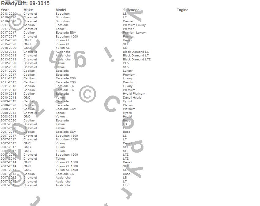 Avalanche, Escalade, Escalade ESV, Escalade EXT, Suburban 1500, Tahoe, Yukon, Yukon XL, Yukon XL 1500, Cadillac, Chevrolet, GMC, 2015, 2014, 2013, 2012, 2011, 2010, 2009, 2008 more…