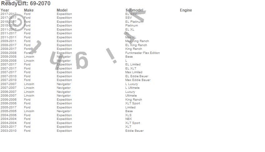 Below is an abreviated list of applications for the SST Lift Kit.