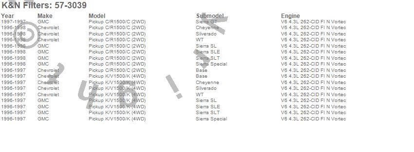 Below is an abreviated list of applications for the Filtercharger Injection Performance Kit.