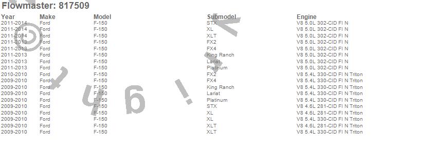 Below is an abreviated list of applications for the Force II Cat Back System.