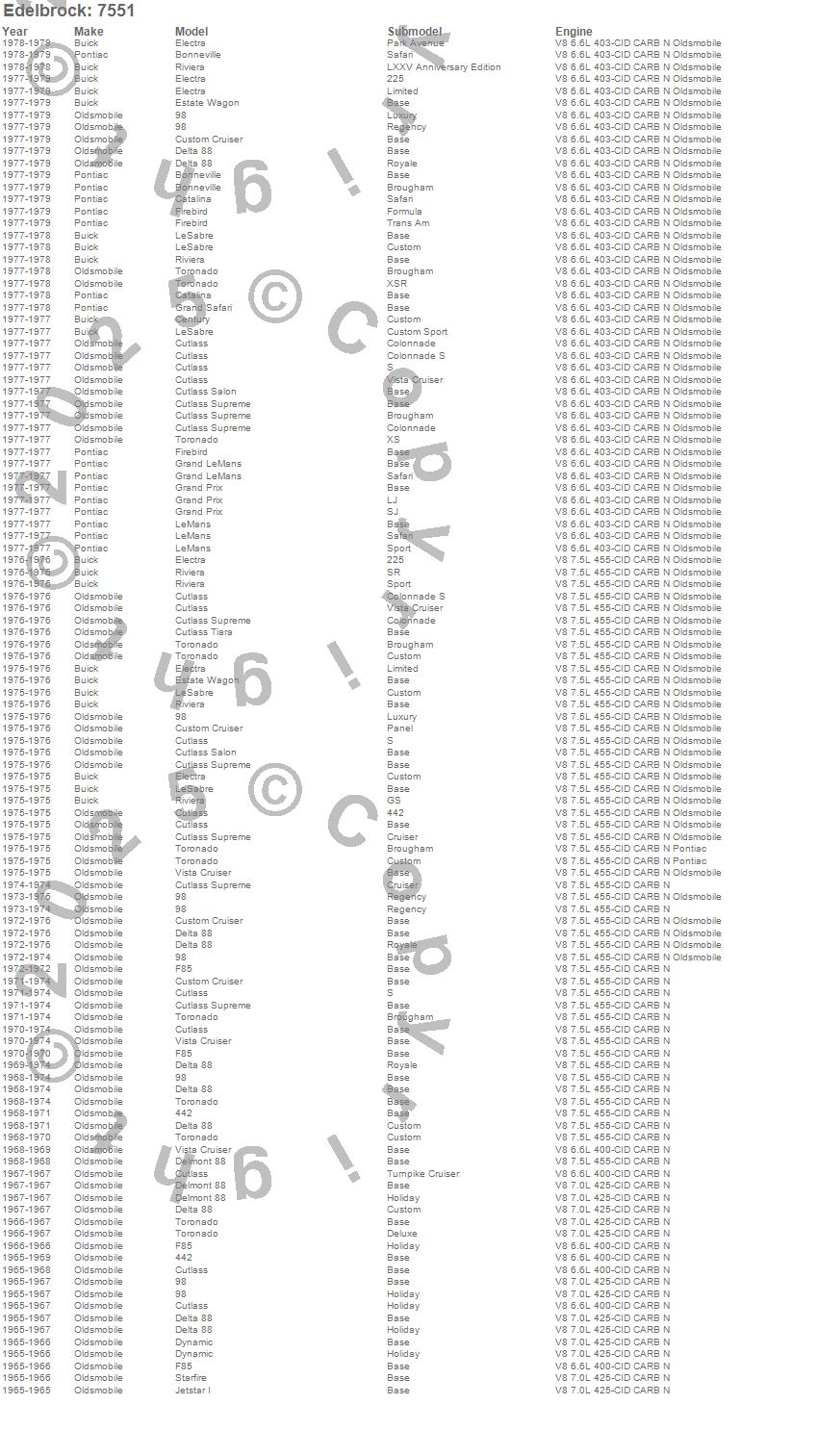 442, 98, Bonneville, Catalina, Centurion, Century, Custom Cruiser, Cutlass, Cutlass Salon, Cutlass Supreme, Cutlass Tiara, Delta 88, Electra, Estate Wagon, F85, Grand Safari, GS 455, LeSabre, Riviera, Skylark more…