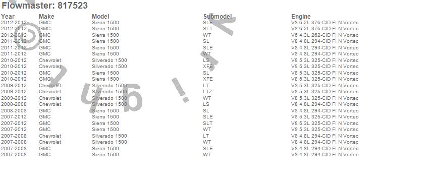 Below is an abreviated list of applications for the Force II Cat Back System.