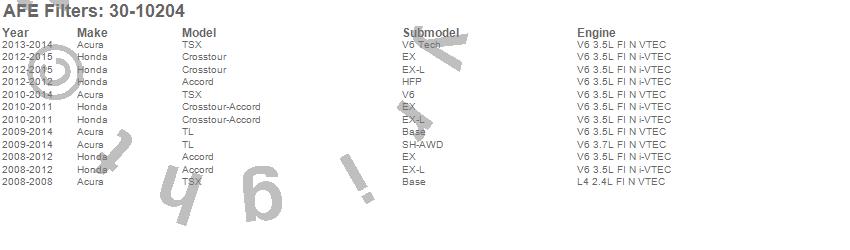 Below is an abreviated list of applications for the MagnumFLOW OE Replacement PRO 5R Air Filter.