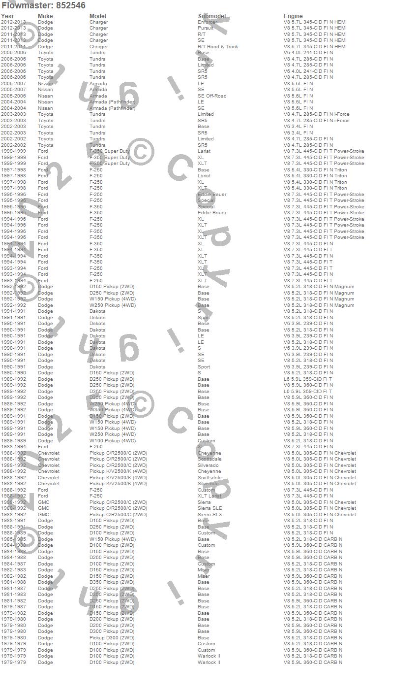 Below is an abreviated list of applications for the Super 40 Delta Flow Muffler.